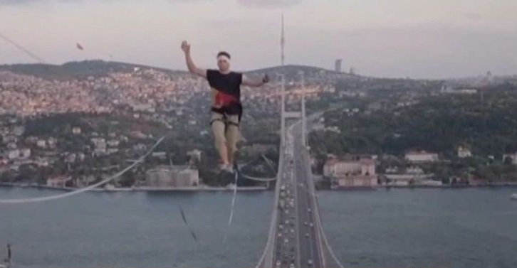 Ένα εντυπωσιακό επίτευγμα πέτυχε ένας Εσθονός, ο οποίος ακροβάτησε σε slackline που στήθηκε στη γέφυρα του Βοσπόρου της Κωνσταντινούπολης το βράδυ της Κυριακής (15 Σεπτεμβρίου), σε μια διαδρομή μήκους 1.074 μέτρων που τον έφερε από την Ασία στην Ευρώπη.
