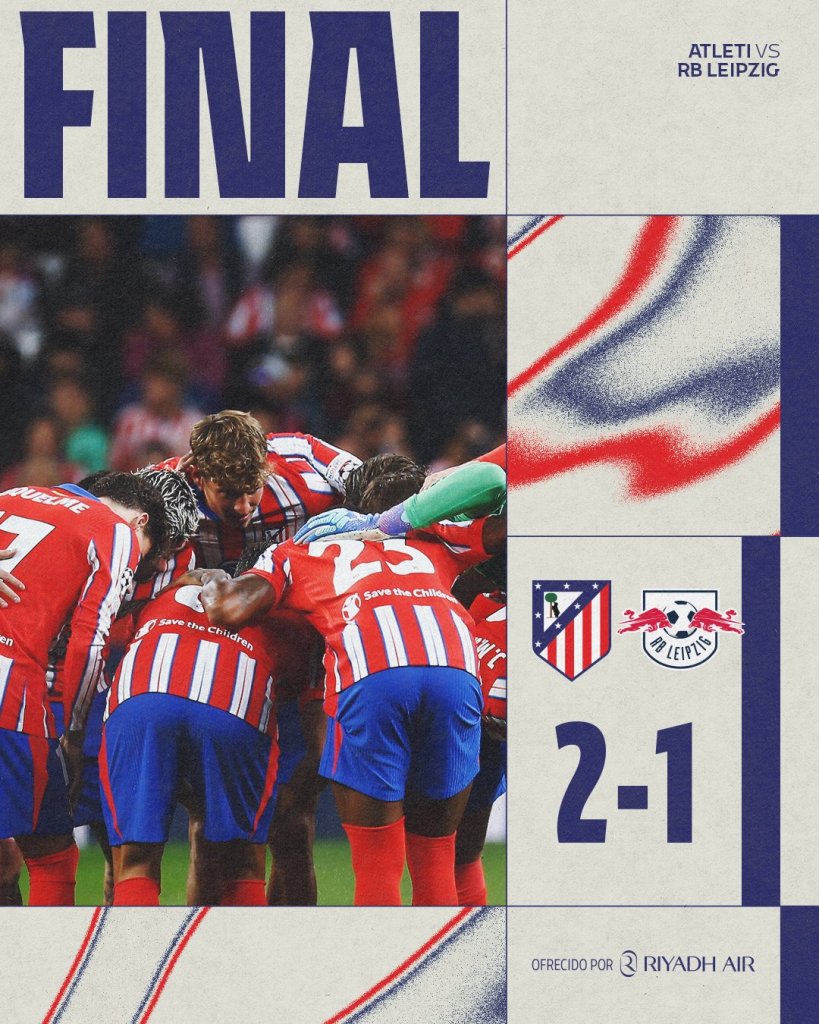 Σκληρό καρύδι για μια ακόμη φορά αποδείχτηκε η Ατλέτικο. Η ομάδα του Σιμεόνε βρέθηκε πίσω στο σκορ από τη Λειψία αλλά στο τέλος επικράτησε με 2-1, με τον Χιμένες να πετυχαίνει το «χρυσό» γκολ στο 90’. Την ασίστ αλλά και το άλλο γκολ ο Γκριεζμάν!
