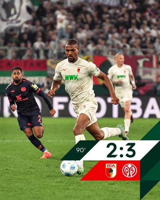 Σε ένα φοβερό ματς στη «WWK Arena», οπού είχε πέντε γκολ, πολλές φάσεις, σκληρές μάχες και δύο κόκκινες(μια για κάθε ομάδα), η Μάιντς κέρδισε με 3-2 την Άουγκσμπουργκ και πανηγύρισε το πρώτο της τρίποντο στη φετινή Bundesliga.