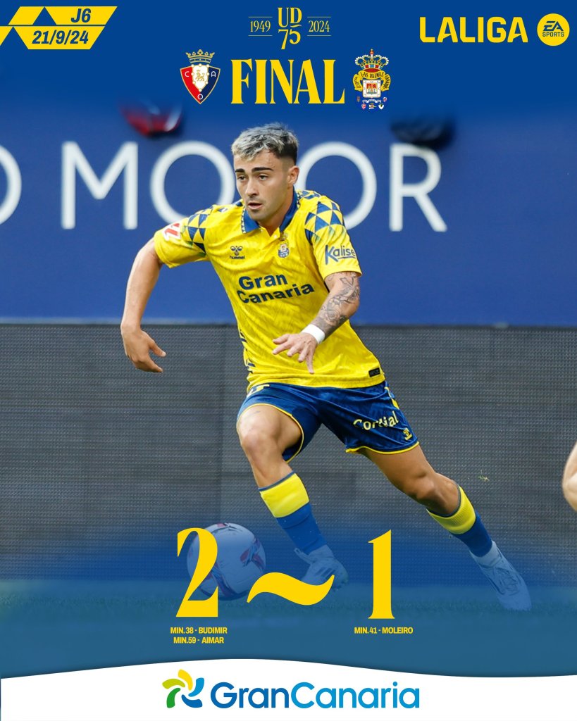 Αρνητικό ρεκόρ στην ιστορία της κατέγραψε η Λας Πάλμας, αφού, στο El Sadar, ηττήθηκε 2-1 από την Οσασούνα και συμπλήρωσε 20 διαδοχικά ματς χωρίς νίκη. Τρίτη συνεχόμενη, εντός έδρας νίκη, για την Οσασούνα.