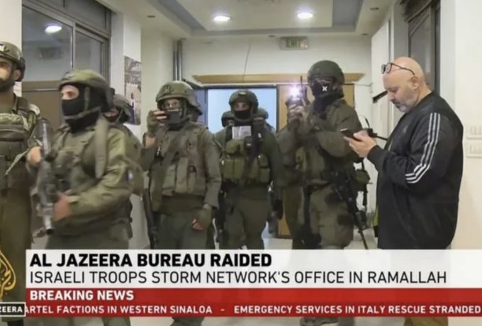 Στρατιώτης είπε στον παλαιστίνιο δημοσιογράφο Ουάλιντ αλ Ομάρι πως «υπάρχει απόφαση της δικαιοσύνης (του Ισραήλ, η οποία διατάσσει) να κλείσει το Al Jazeera για 45 ημέρες», σκηνή που αναμετέδωσε απευθείας το τηλεοπτικό δίκτυο.