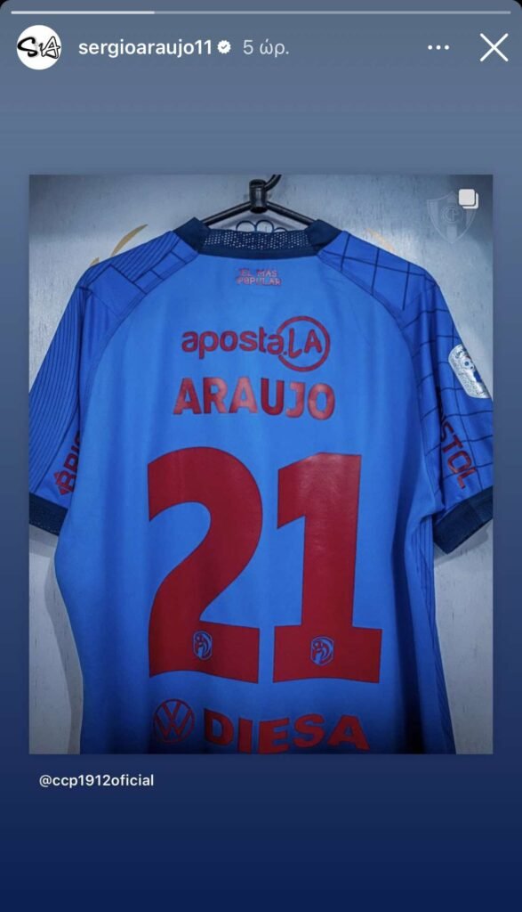 Το νούμερο 21 διάλεξε και φοράει στη Σέρο Πορτένιο ο Σέρχιο Αραούχο και το βράδυ πόσταρε τη φανέλα του στο instagram με το νούμερό του...