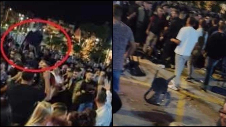 Όπως φαίνεται στο βίντεο, πετούσαν μέχρι και καρέκλες, ενώ ο τραγουδιστής έλεγε από το μικρόφωνο «ρε παιδιά, ήμαρτον Παναγία μου».