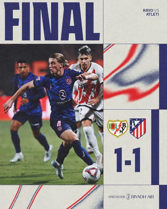 Κόλλησε στο «Βαγιέκας» η Ατλέτικο Μαδρίτης! Οι «ροχιμπλάνκος» έμειναν στο 1-1 με την Ράγιο Βαγεκάνο στο πλαίσιο της 6ης αγωνιστικής της La Liga και πλεόν βρίσκεται στο -6 από την πρωτοπόρο Μπαρτσελόνα.