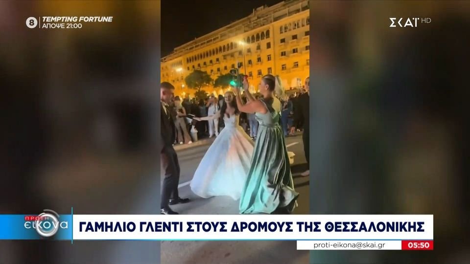 Γαμήλιο γλέντι εντυπωσιάζει στους δρόμους της Θεσσαλονίκης.