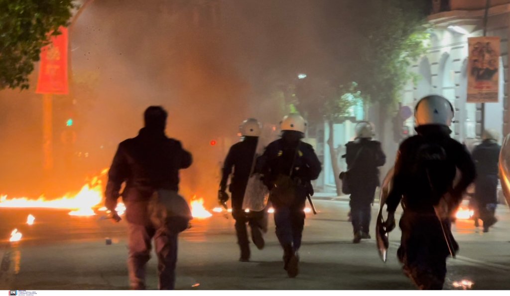 Ειδικότερα, άγνωστοι πέταξαν μολότοφ σε άνδρες των ΜΑΤ που βρίσκονταν στη συμβολή των οδών 3ης Σεπτεμβρίου και Φέρων με αποτέλεσμα να τραυματιστεί ένας αστυνομικός ελαφρά στον ώμο.