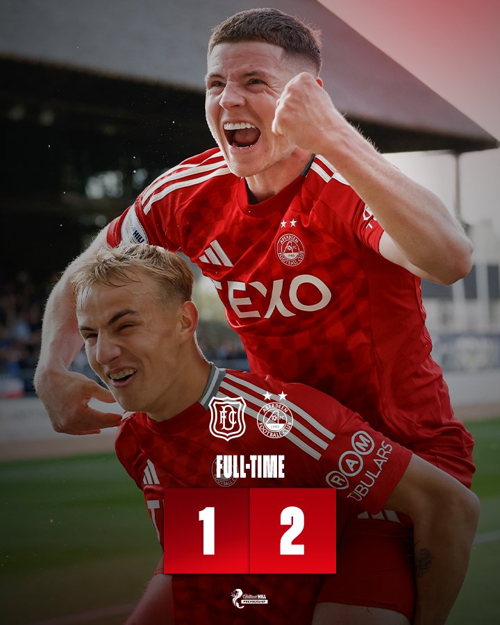 Με τον Τζιμ Τελέν στον πάγκο, η Αμπερντίν εμφανίζει τρομερή αγωνιστική εικόνα, έχοντας νικήσει 12 φορές στα τελευταία 12 παιχνίδια. Στο "Dens Park" επικράτησε 2-1 επί της Νταντί και παραμένει στην κορυφή. Στο 15ο λεπτό, ο Κέβιν Νίσμπετ άνοιξε το σκορ για την Αμπερντίν. Στο 32', ο Τόπι Κέσκινεν, δημιουργός του πρώτου γκολ, σκόραρε για το 0-2. Στις καθυστερήσεις του ημιχρόνου, ο Σάιμον Μάρεϊ, με εύστοχη εκτέλεση πέναλτι, μείωσε για τη Νταντί, διαμορφώνοντας το τελικό 1-2.