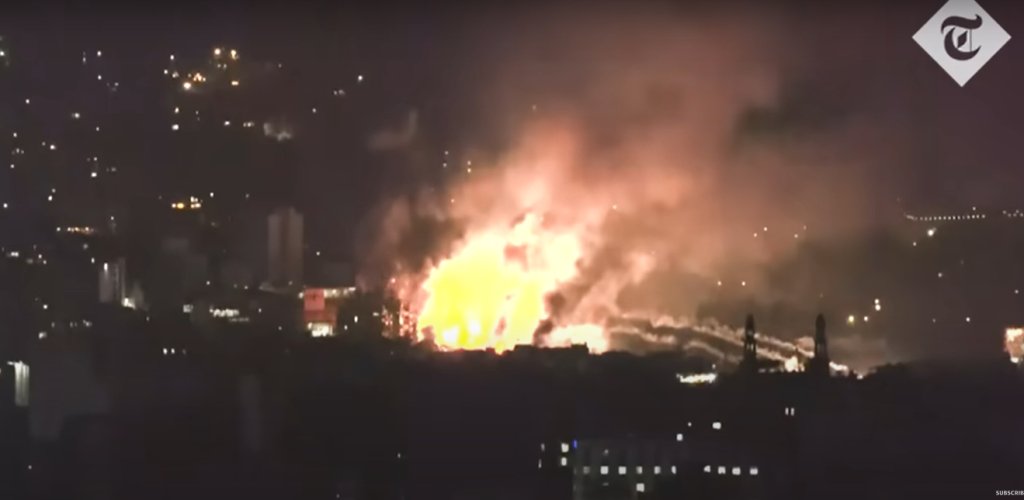 Οι εκρήξεις που σημειώθηκαν ήταν συγκλονιστικές. Τεράστια σύννεφα καπνού καλύπτουν την πυκνοκατοικημένη γειτονιά της Βηρυτού.
