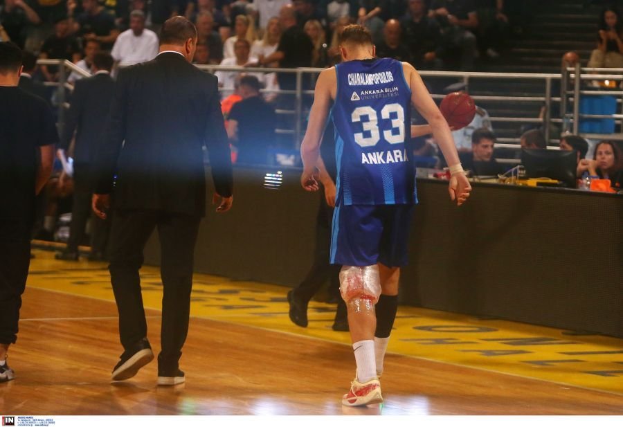 Στο παιχνίδι Άρης-Τουρκ Τέλεκομ, για το EuroCup, ο Βασίλης Χαραλαμπόπουλος έπεσε στο παρκέ, κρατώντας το γόνατό του, και αποχώρησε υποβασταζόμενος, με τη βοήθεια του ιατρικού επιτελείου της Τουρκ Τέλεκομ.