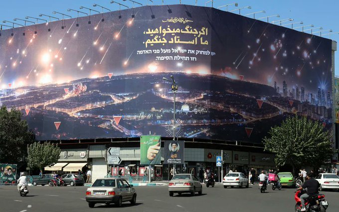 Τεράστιες αφίσες με εικόνες από την πυραυλική επίθεση στο Ισραήλ, έχουν αναρτηθεί σε κεντρικά σημεία της Τεχεράνης. Οι αφίσες δείχνουν μια βροχή από πυραύλους να πέφτουν σε ισραηλινή πόλη και το μήνυμα στα φαρσί αναφέρει: «Αν θέλετε πόλεμο, είμαστε η οι άρχοντες του πολέμου». Από κάτω στα εβραϊκά γράφει: «Το Ισραήλ πρέπει να εξαφανιστεί από προσώπου γης και αυτή είναι η αρχή της ιστορίας».