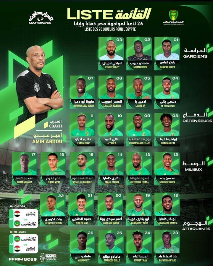 Ο Κοϊτά κλήθηκε στη Μαυριτανία για τα δύο παιχνίδια με την Αίγυπτο στις 11 και 15 Οκτωβρίου στο πλαίσιο των προκριματικών του Κυπέλλου Εθνών Αφρικής.