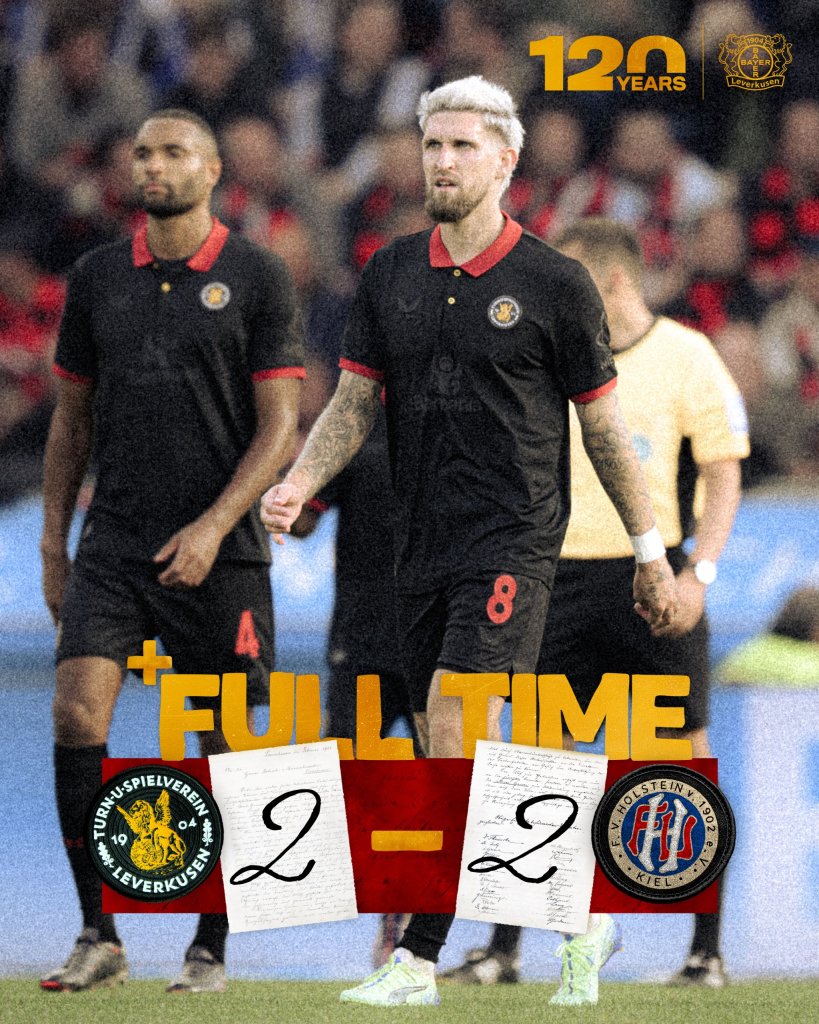 Έξι λεπτά μετά την έναρξη της επανάληψης, η Χόλσταϊν έφτασε κοντά στην ισοφάριση, με πλασέ του Αρπ και τον Άντριχ να απομακρύνει, προτού η μπάλα περάσει τη γραμμή τέρματος. Οι φιλοξενούμενοι πίεσαν για την ισοφάριση και στο 68ο λεπτό κέρδισαν πέναλτι, σε ανατροπή του Γκίγκοβιτς από τον Φρίμπονγκ. Την εκτέλεση ανέλαβε ο Αρπ, που είχε μπει στο ματς με την έναρξη της επανάληψης, και ευστόχησε για το 2-2. Η Χόλσταϊν Κίελ ισοφάρισε στο 69' και, τέσσερα λεπτά αργότερα, πλησίασε την ολική ανατροπή, όταν ο ξεμαρκάριστος Πίσλερ έπιασε τη κεφαλιά, υποχρεώνοντας τον Χραντέτσκι σε σπουδαία επέμβαση. Οι παίκτες της Λεβερκούζεν έκλεισαν τους αντιπάλους στην περιοχή τους, πίεσαν για τρίτο γκολ, όμως, αυτή τη φορά, δεν κατάφεραν να σκοράρουν στις καθυστερήσεις και έχασαν δυο πολύτιμους βαθμούς. Όσο για τη Χόλσταϊν Κίελ, έφτασε τους δυο βαθμούς μετά από έξι αγωνιστικές.