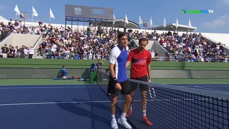 Ο Ρώσος επικράτησε 7-6(3), 6-3, εκμεταλλευόμενος και το γεγονός πως, στη διάρκεια του δεύτερου σετ, ο Τσιτσιπάς έχασε τον ρυθμό του, μετά από έντονη διαμαρτυρία προς τον διαιτητή.