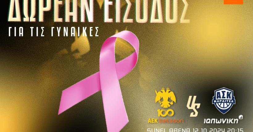Η ΑΕΚ Betsson BC και η Μεγάλη Χορηγός της Betsson, στο πλαίσιο των κοινών τους δράσεων και όντας ευαισθητοποιημένοι και οι δύο φορείς σε ζητήματα Εταιρικής Κοινωνικής Ευθύνης, ανακοινώνουν, ότι στον αγώνα με την Καρδίτσα ΙΑΠΩΝΙΚΗ, η είσοδος για τις γυναίκες θα είναι δωρεάν.