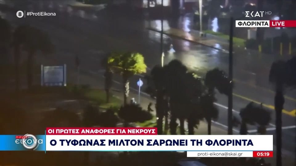 Ο τυφώνας Μίλτον έφτασε στη Φλόριντα, με ανέμους πάνω από 205 χλμ/ώρα να χτυπούν τα παράλια της περιοχής.