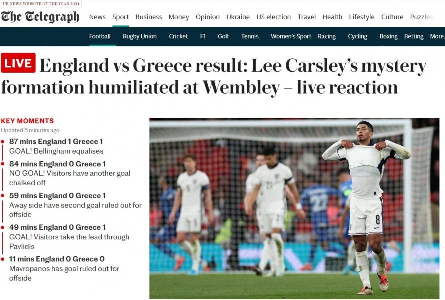 Τα βρετανικά Μέσα έχουν μείνει... άναυδα με το αποτέλεσμα, κάτι που αποτυπώνεται και στους τίτλους που χρησιμοποίησαν, στους οποίους φαίνεται η απογοήτευση των Άγγλων. Δείτε ενδεικτικά την πρώτη αντίδραση του βρετανικού Τύπου:
