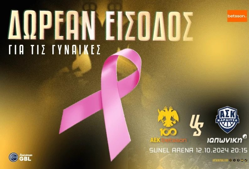 Υπενθυμίζουμε, ότι η ΑΕΚ Betsson BC και η Μεγάλη Χορηγός της Betsson, στο πλαίσιο των κοινών τους δράσεων και όντας ευαισθητοποιημένοι και οι δύο φορείς σε ζητήματα Εταιρικής Κοινωνικής Ευθύνης, συναποφάσισαν στον αγώνα με την Καρδίτσα, η είσοδος για τις γυναίκες να είναι δωρεάν.
