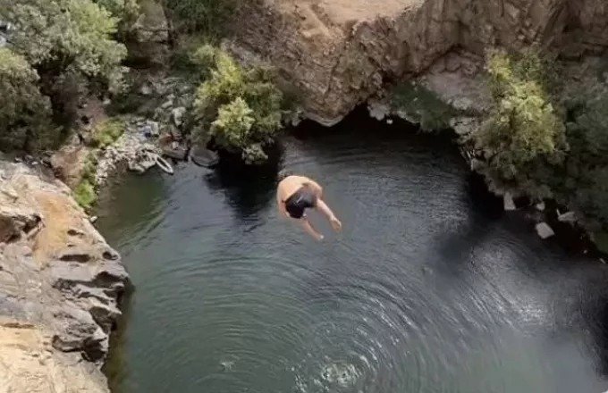 Ο Girardot έκανε αυτό το παράτολμο άλμα από τον καταρράκτη La Cimbarra κοντά στην πόλη Aldeaquemada στην κεντρική Ισπανία και ανέβασε σχετικά βίντεο που κόβουν την ανάσα.