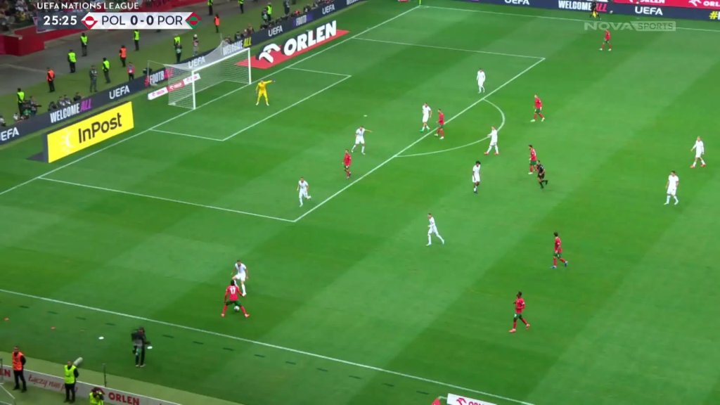 Το "3 στα 3" έκανε η Πορτογαλία, στον πρώτο όμιλο της League A, νικώντας 3-1, εκτός έδρας, την Πολωνία. Στο 26ο λεπτό ο Nέβες έκανε το γέμισμα προς την περιοχή, ο Φερνάντες με το κεφάλι έστρωσε στον Μπερνάρντο Σίλβα, ο οποίος εκτέλεσε, ανοίγοντας το σκορ για τους Πορτογάλους. Στο 37', ο Λεάο σούταρε, η μπάλα χτύπησε στο δοκάρι και, στην επαναφορά, ο Κριστιάνο Ρονάλντο, με το 906ο τέρμα στην καριέρα του, έκανε το 0-2. Οι Πολωνοί μείωσαν στο 78ο λεπτό με σουτ του Ζιελίνσκι και, δέκα λεπτά αργότερα, το αυτογκόλ του Μπέντναρεκ διαμόρφωσε το τελικό 1-3.