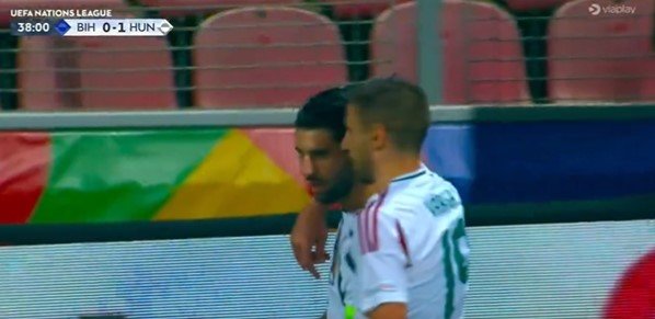 Από εκεί και πέρα ο ρυθμός έπεσε για λίγο με την μπάλα να πηγαίνει πάνω κάτω χωρίς όμως φάσεις. Στο 38’ ο Σάλαϊ σούταρε εκτός εστίας για τους Ούγγρους. Ένα λεπτό αργότερα ο Νάγκι βγάζει όμορφη πάσα στην πλάτη της άμυνας και ο αρχηγός της Ουγγαρίας, Ντόμινικ Σομποσλάι με σουτ από πλάγια θέση άνοιξε το σκορ για το 1-0. Στο τέλος του ημιχρόνου ο Τζέκο έφτασε μία ανάσα από την ισοφάριση με προσωπική ενέργεια, καθώς τα έκανε όλα σωστά εκτός από το τελείωμα το οποίο ήταν άστοχο μέσα από την περιοχή.