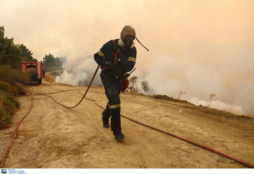 Στο σημείο επιχειρούν 50 πυροσβέστες με 1 πεζοπόρο τμήμα 4ης ΕΜΟΔΕ, 19 οχήματα, 6 αεροσκάφη και 1 ελικόπτερο.