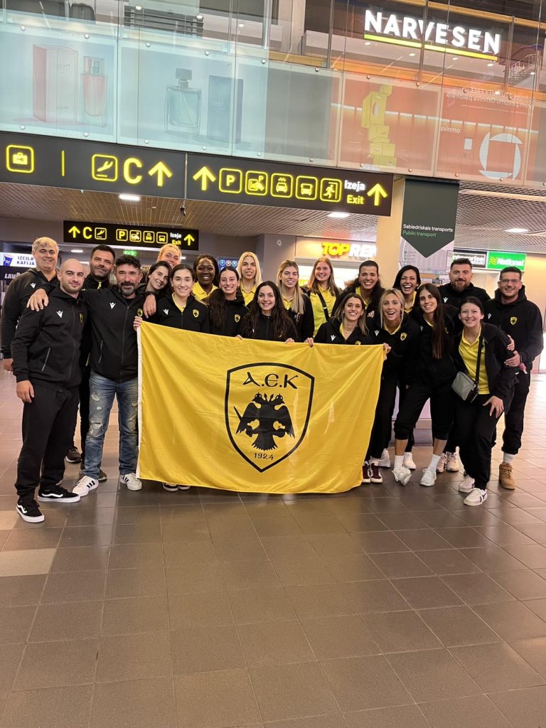 Η γυναικεία ομάδα βόλεϊ της ΑΕΚ αντιμετωπίζει τη Ρίγα εκτός έδρας με στόχο την πρόκριση στους «32» του Τσάλεντζ Καπ. Η Ένωση ξεκίνησε το πρωί στις 09:00 από τη Νέα Φιλαδέλφεια και έφτασε στη Ρίγα στις 19:30 το απόγευμα. Η αποστολή της ΑΕΚ είχε έναν ενδιάμεσο σταθμό, τη Σόφια και συνάντησε αρκετή καθυστέρηση στη δεύτερη πτήση.