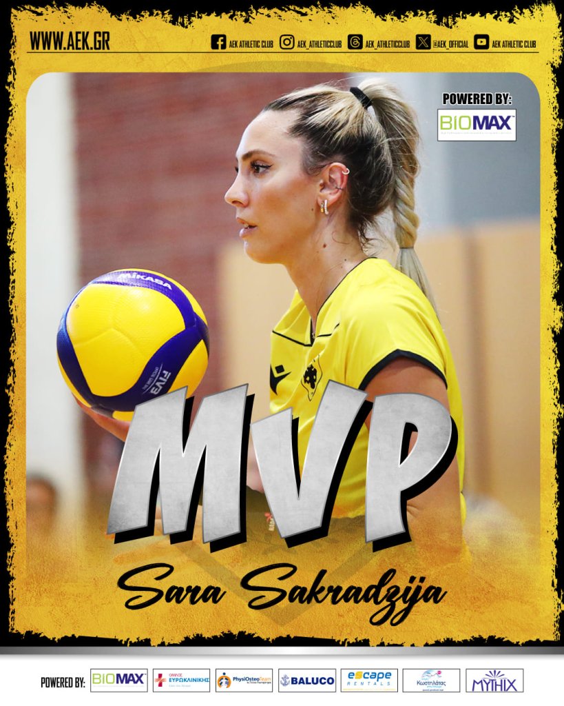 Η γυναικεία ομάδα της ΑΕΚ νίκησε με 1-3 σετ στη Λετονία τη Ρίγα και πήρε την πρόκριση στους «32» του Τσάλεντζ Καπ. Σε αυτό το παιχνίδι όλα τα κορίτσια ήταν εξαιρετικά, αλλά η Σάρα Σακραντζίγια αναδείχθηκε BIOMAX MVP του αγώνα.