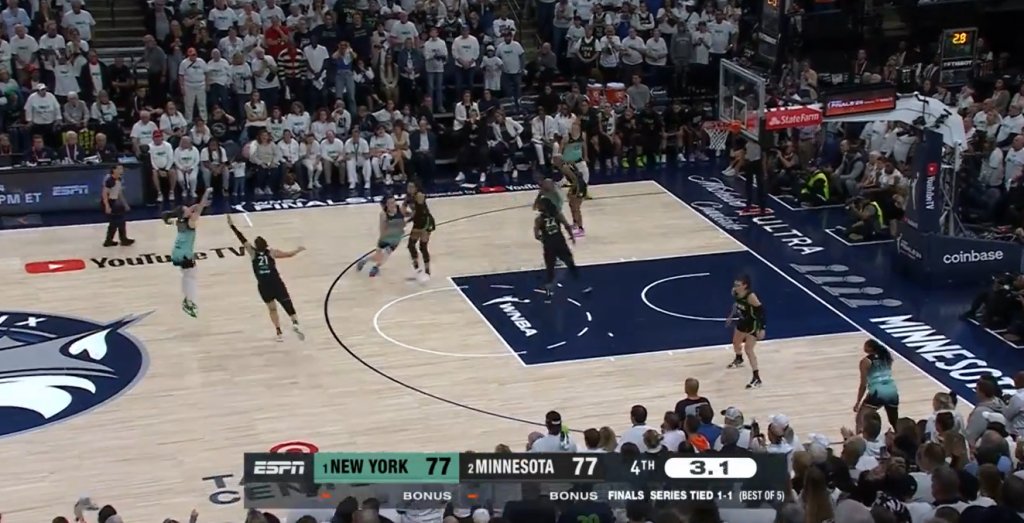 Στα WNBA Finals, οι Νιου Γιορκ Λίμπερτι βρίσκονται μια νίκη μακριά από την κατάκτηση του πρωταθλήματος, αφού προηγούνται 2-1 στη σειρά με τους Μινεσότα Λινξ. Μάλιστα, το Game 3 κρίθηκε από ένα μυθικό τρίποντο της Σαμπρίνα Ιονέσκου.