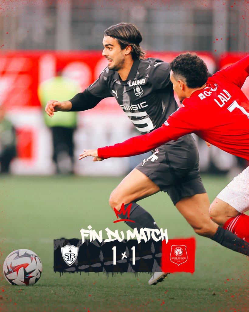 Στο πρώτο ημίχρονο, η Μπρεστ είχε μεγάλη ευκαιρία να ανοίξει το σκορ όταν, στο 41ο λεπτό, ο Καμαρά σημάδεψε το δοκάρι. Ήταν ανώτερη, σε όλη τη διάρκεια της αναμέτρησης, και άνοιξε το σκορ στο 54ο λεπτό, με εύστοχη εκτέλεση πέναλτι του Ντελ Καστιγιό. Επτά λεπτά αργότερα, ο Ζότα πέρασε στο ματς, για λογαριασμό της Ρεν και, στο 87', ήταν εκείνος που, με άψογο τελείωμα έπειτα από ασίστ του Καλιμουεντό, διαμόρφωσε το τελικό 1-1. Έτσι, η Ρεν συμπλήρωσε 13 σερί ματς αήττητη στην έδρα της Μπρεστ, παραμένει, ωστόσο, χαμηλά στη βαθμολογία. Λίγο πριν υποδεχτεί τη Λεβερκούζεν, για το Champions League, η Μπρεστ έχασε ευκαιρία να σκαρφαλώσει στην πρώτη εξάδα.