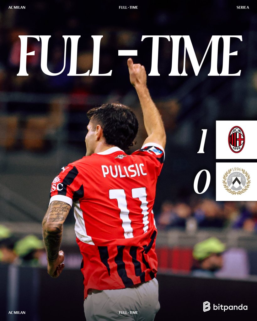 Μεγάλη νίκη για τη Μίλαν η οποία ενώ ξεκίνησε ιδανικά το παιχνίδι, έμεινε με δέκα στο μισάωρο, δέχθηκε πίεση, παρόλα αυτά έδειξε ανθεκτικότητα και πήρε σημαντική νίκη με 1-0 κόντρα στην Ουντινέζε.