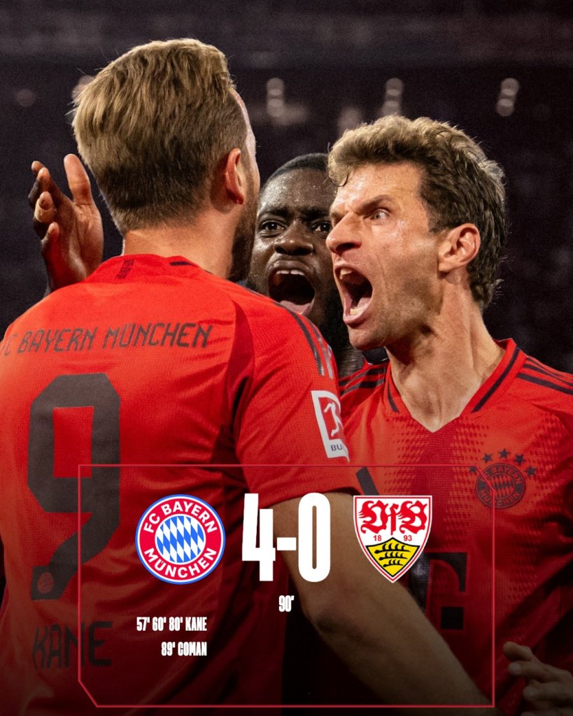 Στις νίκες και στην κορυφή επέστρεψε η Μπάγερν, η οποία παρά τις απουσίες κέρδισε με 4-0 τη Στουτγκάρδη. Νίκη μετά από έναν μήνα για τους Βαυαρούς, που είχαν τον Χάρι Κέιν σε μεγάλο βράδυ.