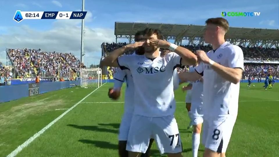 Η εύστοχη εκτέλεση πέναλτι του Κβαρατσχέλια, λίγο μετά τη συμπλήρωση μιας ώρας αγώνα, επέτρεψε στη Νάπολι να φύγει με τους τρεις βαθμούς, 1-0, από την έδρα της Έμπολι και να παραμείνει στην κορυφή της Serie A, προς ικανοποίηση των 6.000 φίλων της, που βρέθηκαν στις εξέδρες του "Carlo Castellani".