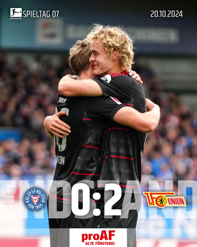 Η Ουνιόν κέρδισε με 2-0 μέσα στην έδρα της Χολστάιν κι έπιασε τη Λεβερκούζεν στην 4η θέση. Στην προτελευταία θέση με μόλις 2 πόντους η ομάδα από το Κίελο.