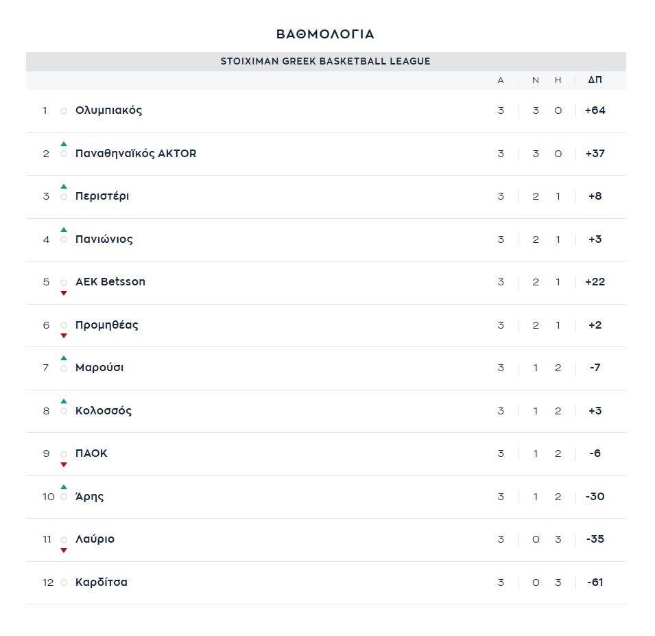 Με τη νίκη του Παναθηναϊκού επί της ΑΕΚ ολοκληρώθηκε η 3η αγωνιστική της Stoiximan GBL. Οι πράσινοι και ο Ολυμπιακός είναι πλέον οι μόνες ομάδες που έχουν κάνει το 3-0.