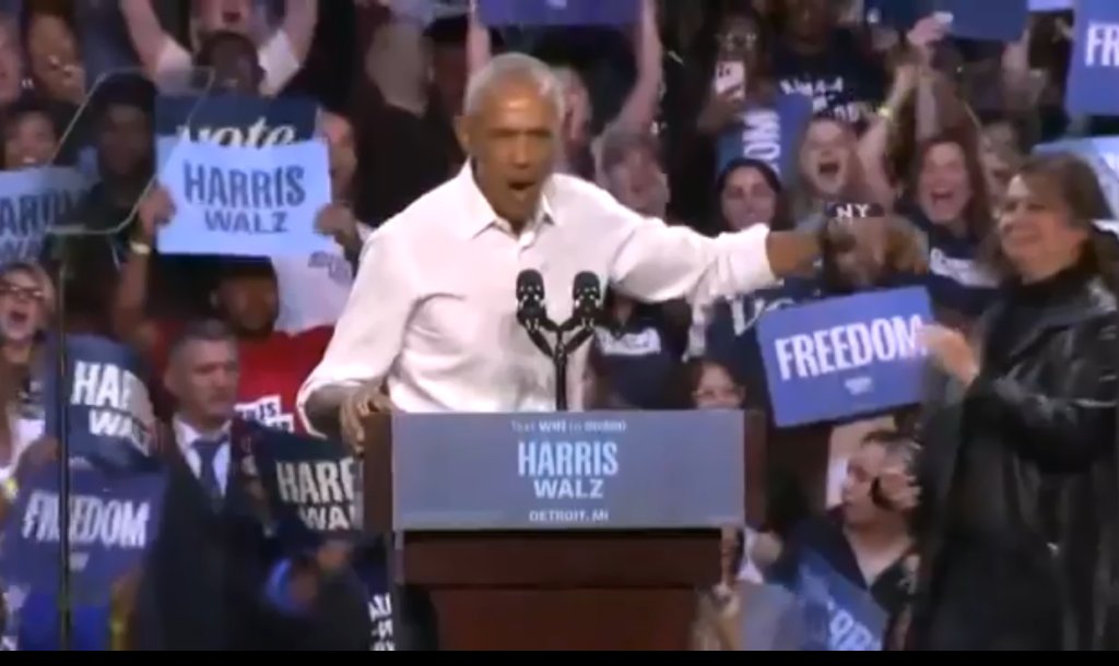 «Κοιτάξτε, λοιπόν, έγραψα μερικά πράγματα που ήθελα να πω. Είμαι εδώ απόψε για δύο σημαντικούς λόγους. Όπως οι περισσότεροι από εσάς γνωρίζετε, η πόλη του Ντιτρόιτ και ολόκληρη η πολιτεία του Μίσιγκαν σημαίνουν πολλά για μένα. Και πηγαίνοντας σε αυτές τις εκλογές, τα φώτα της δημοσιότητας είναι πάνω μας περισσότερο από ποτέ, και νομίζω ότι είναι σημαντικό να χρησιμοποιήσετε τη φωνή σας, γι' αυτό ενθαρρύνω όλους να πάνε και να ψηφίσουν, παρακαλώ. Πιστεύω επίσης ότι οι άνθρωποι δεν πρέπει να φοβούνται να εκφράσουν τις απόψεις τους και δεν νομίζω ότι κανείς θέλει μια Αμερική όπου οι άνθρωποι ανησυχούν για τιμωρία ή τι θα κάνουν οι άνθρωποι αν γνωστοποιήσετε τη γνώμη σας. Νομίζω ότι ο Αντιπρόεδρος Χάρις υποστηρίζει ένα μέλλον για αυτήν τη χώρα όπου αυτές οι ελευθερίες και πολλές άλλες θα προστατεύονται και θα διατηρούνται. Και εδώ για να σας πω πολλά περισσότερα για αυτό, Πρόεδρε Μπαράκ Ομπάμα».