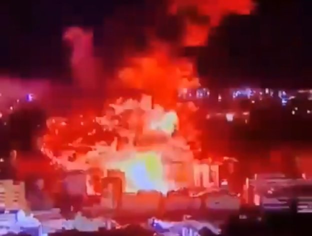 Σε βίντεο που αναρτήθηκε στα κοινωνικά δίκτυα διακρίνεται μια πολυκατοικία να φλέγεται.