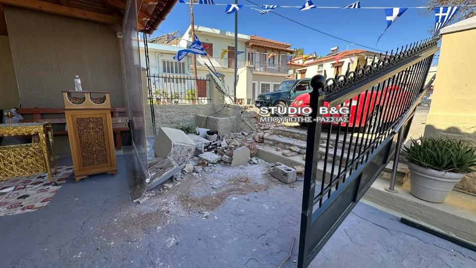 Από την πρόσκρουση δεν σημειώθηκαν τραυματισμοί, προκλήθηκαν, όμως, σοβαρές ζημιές στο όχημα και στη μάντρα της εκκλησίας.