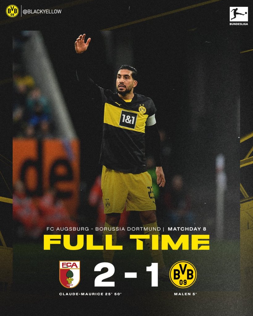 Δεν μπορεί μακριά από το γήπεδό της η Ντόρτμουντ. Απέναντι στη χειρότερη άμυνα της κατηγορίας οι Βεστφαλοί ηττήθηκαν με 2-1 στο Άουγκσμπουργκ και μένουν για ακόμα ένα παιχνίδια με άδεια χέρια.