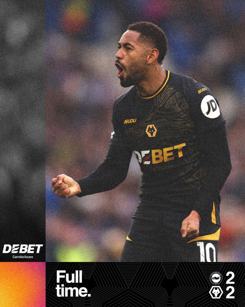 Ωστόσο στο 88’ μετά από κόρνερ η μπάλα έμεινε στην περιοχή της Μπράιτον και ο Αΐτ Νουρί μείωσε σε 2-1 και στο 90+3’ η Γουλβς έφυγε στην κόντρα και ο Κούνια με διαγώνιο σουτ από δεξιά έκανες το 2-2! Μάλιστα στην προηγούμενη φάση η Μπράιτον είχε βγει στην κόντρα με τέσσερις παίκτες έναντι εντός αμυντικού της Γουλβς.