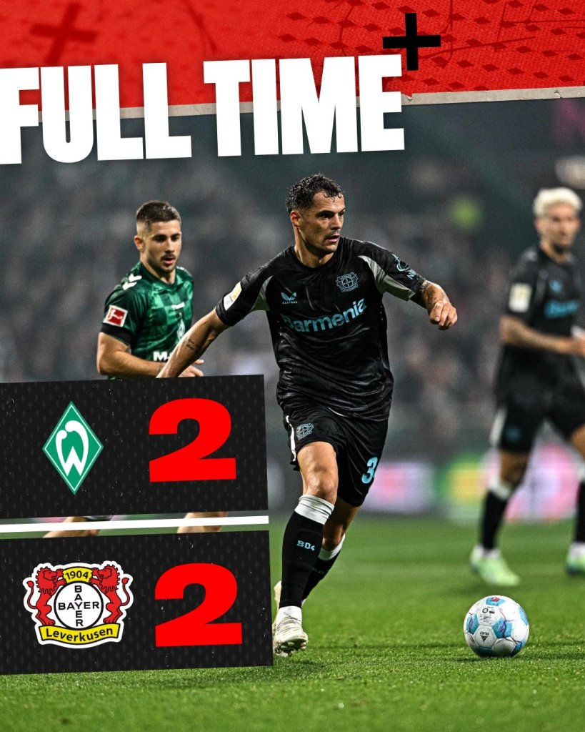 Έπαιξε με τη φωτιά και κάηκε η Λεβερκούζεν. Η πρωταθλήτρια προηγήθηκε δύο φορές ωστόσο έδειξε πολλά ανασταλτικά προβλήματα ξανά με αποτέλεσμα να ισοφαριστεί στο τέλος και να μείνει στο 2-2 με τη Βέρντερ.