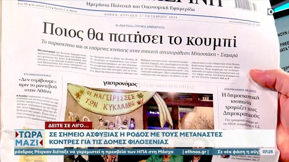 Τα σημερινά πρωτοσέλιδα των εφημερίδων