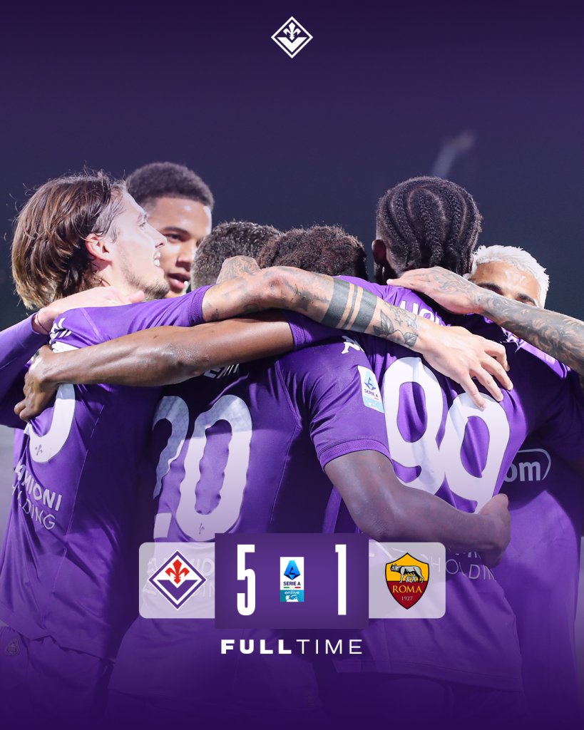 Η Φιορεντίνα ισοπέδωσε τη Ρόμα με 5-1, ανέβηκε στην πρώτη τετράδα και άφησε τη Ρόμα αρκετά πίσω.
