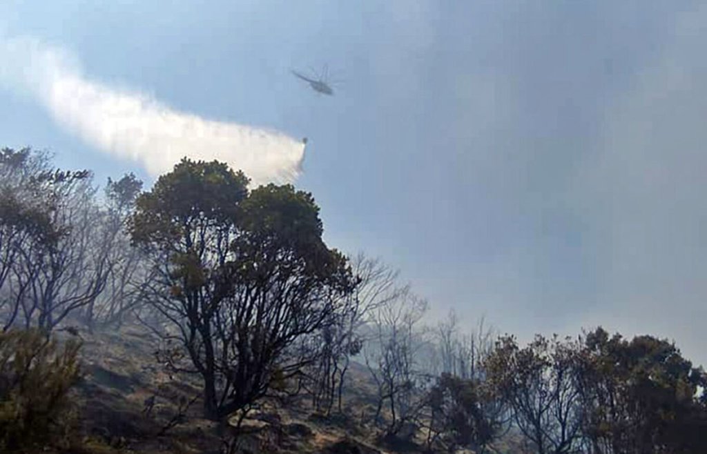 Στην περιοχή επιχειρούν από το πρωί δύο αεροσκάφη κι ένα ελικόπτερο που πραγματοποιούν ρίψεις νερού.