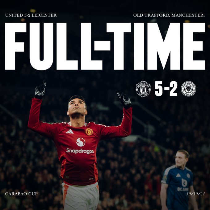 Το σκορ άνοιξε ο Καζεμίρο, ο Βραζιλιάνος σκόραρε δις, ακριβώς το ίδιο έκανε και ο Μπρούνο Φερνάντες. Εξαιρετικός ήταν και ο Γκαρνάτσο, που έκανε το 2-0, ενώ για τη Λέστερ, που σκόραρε δύο φορές στο πρώτο ημίχρονο, διακρίθηκε ο Κόαντι.