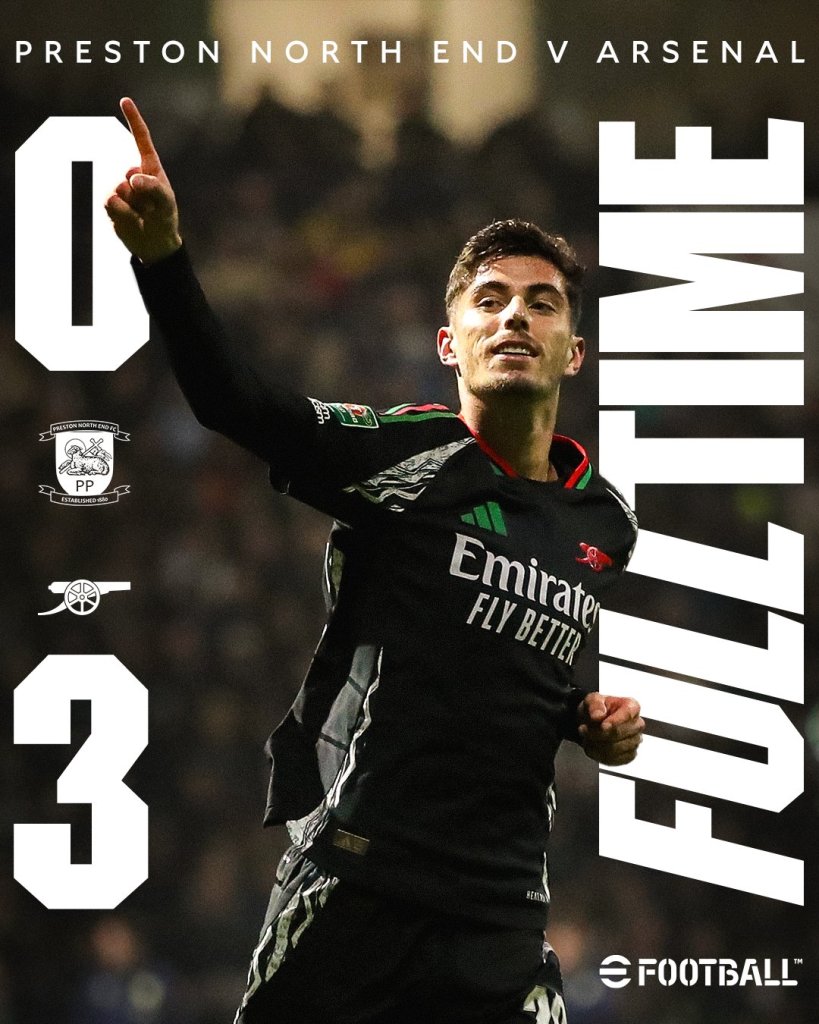 Η Άρσεναλ είχε το ευκολότερο έργο όλων, καθώς συναντούσε εκτός έδρας την Πρέστον και ήθελε να βγάλει αντίδραση, αναλογικά με τα πρόσφατα αποτελέσματά της. Και η αλήθεια είναι πως το κατάφερε με χαρακτηριστική ευκολία, και δίχως να προκύψουν ζητήματα τραυματισμών.