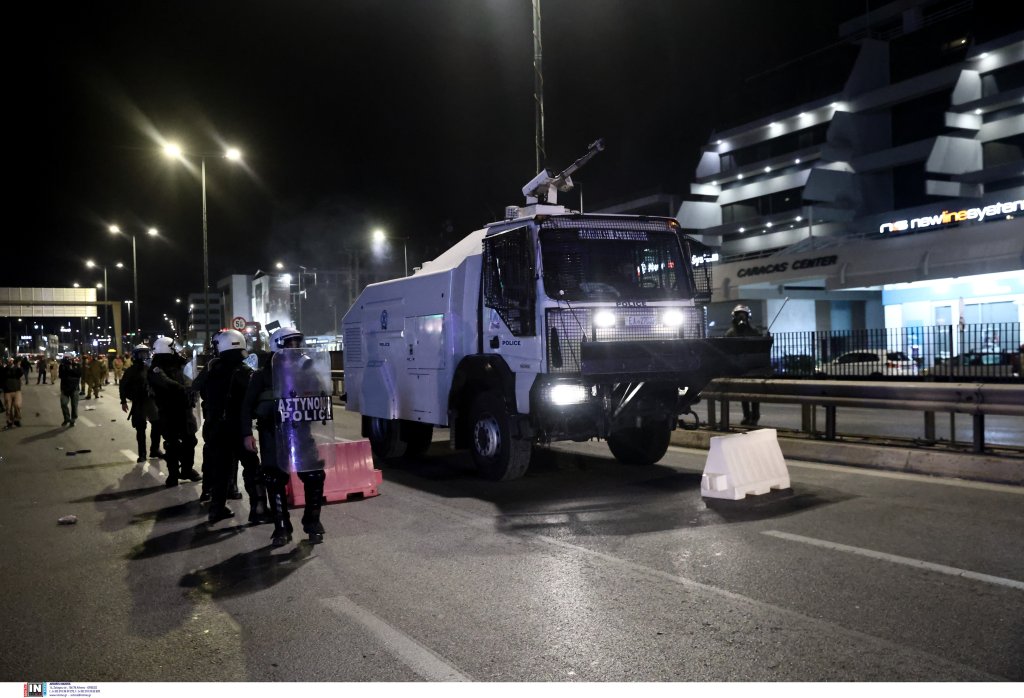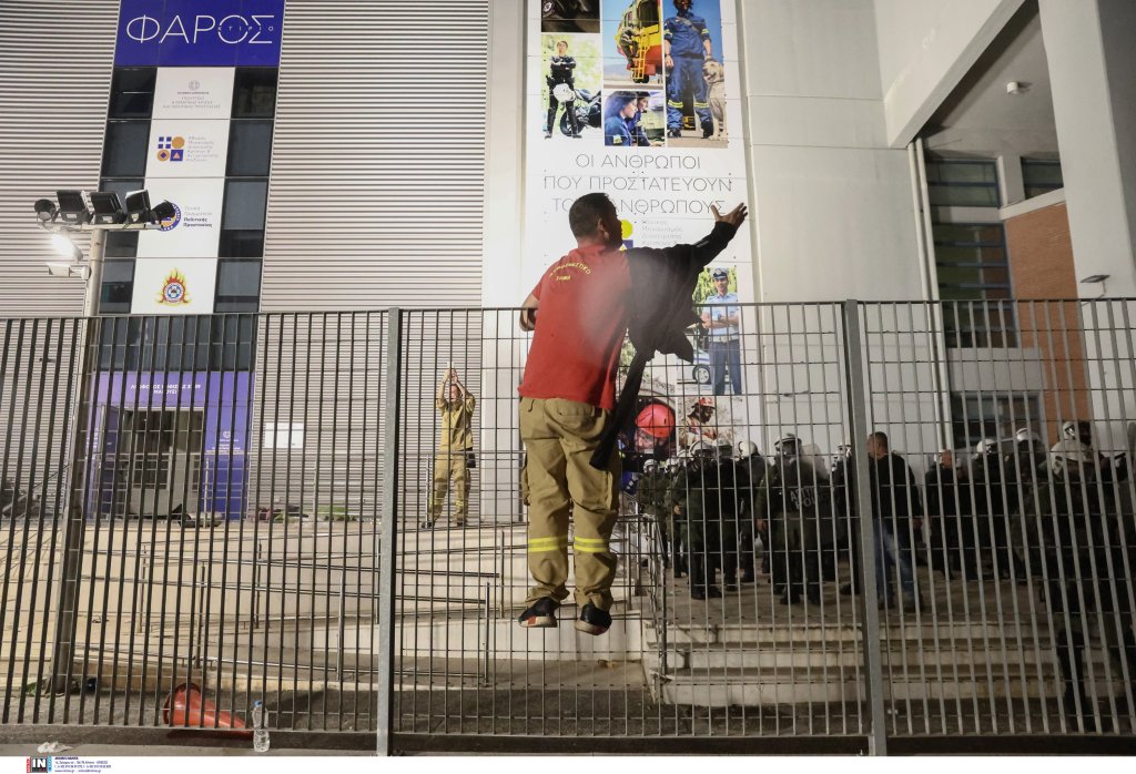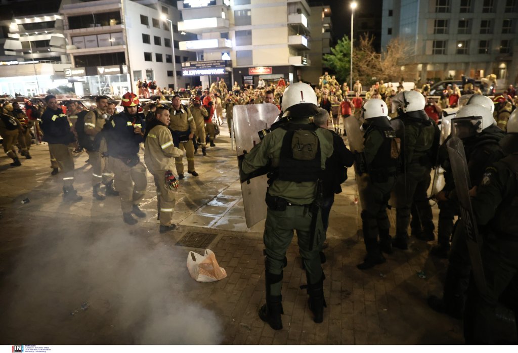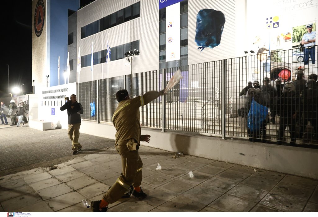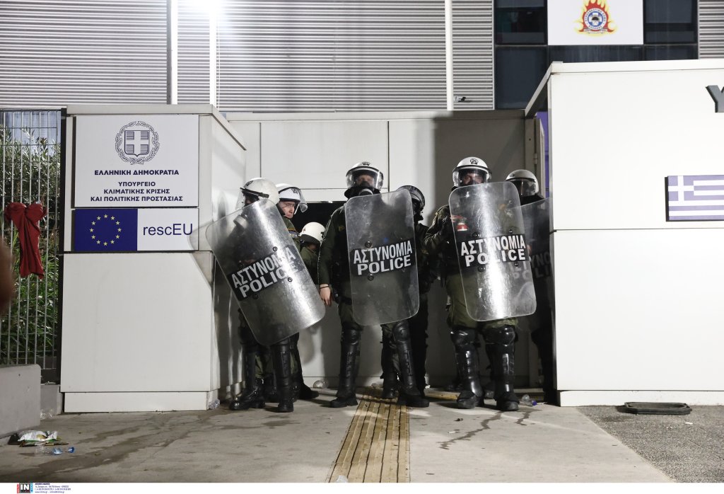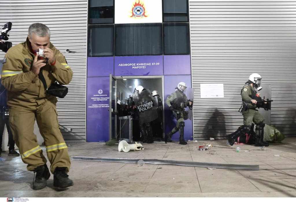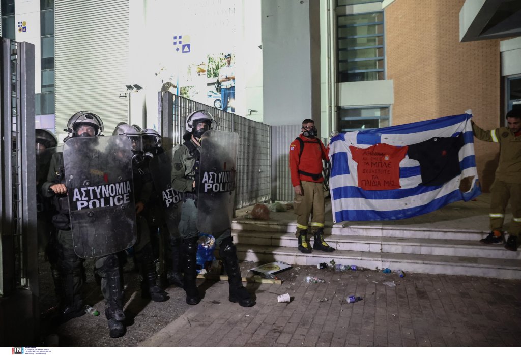 Παράλληλα, ένταση επικρατεί και εξωτερικά του κτηρίου όπου περίπου 200 άτομα έχουν κλείσει την Κηφισίας και στα δύο ρεύματα και πετούν αντικείμενα στους αστυνομικούς. Στα επεισόδια τραυματίστηκε ένας εποχικός πυροσβέστης ο οποίος παρελήφθη από το ΕΚΑΒ.