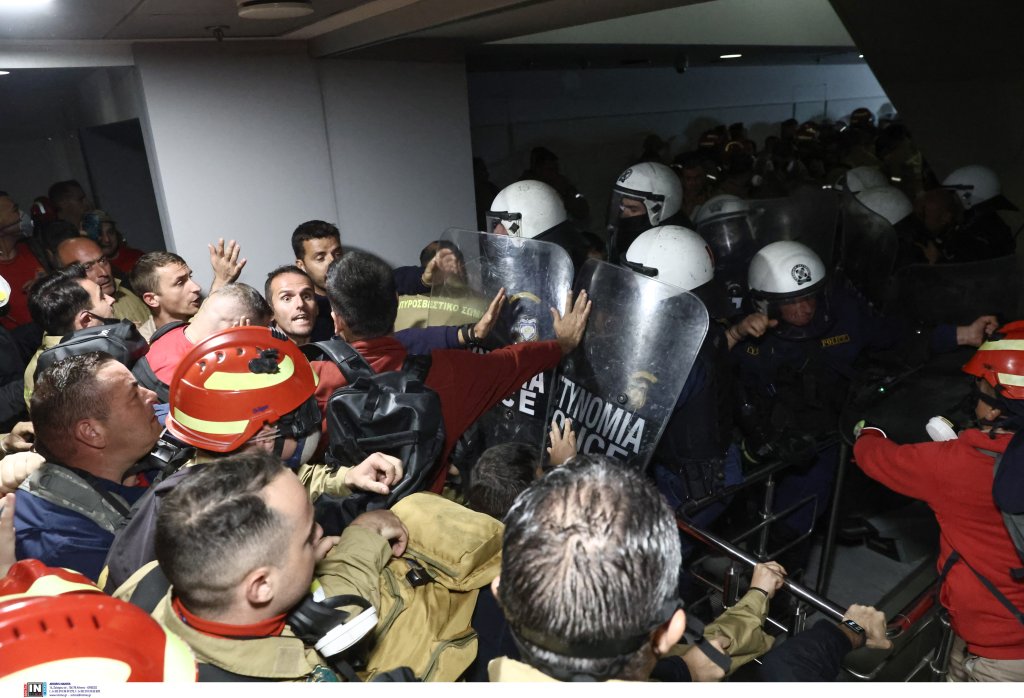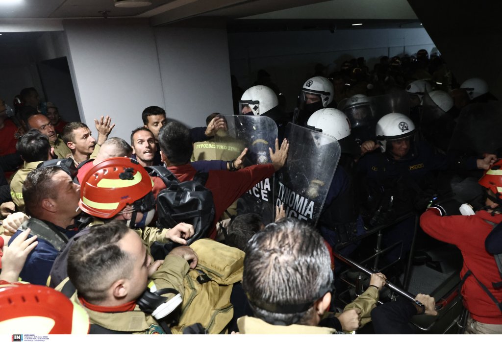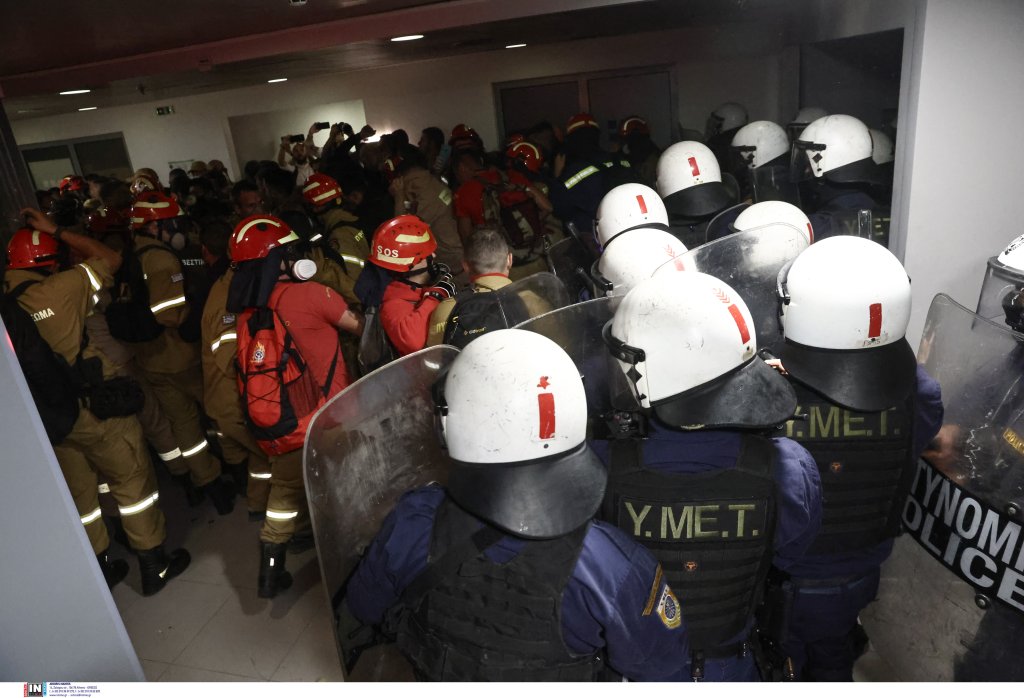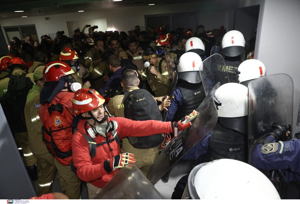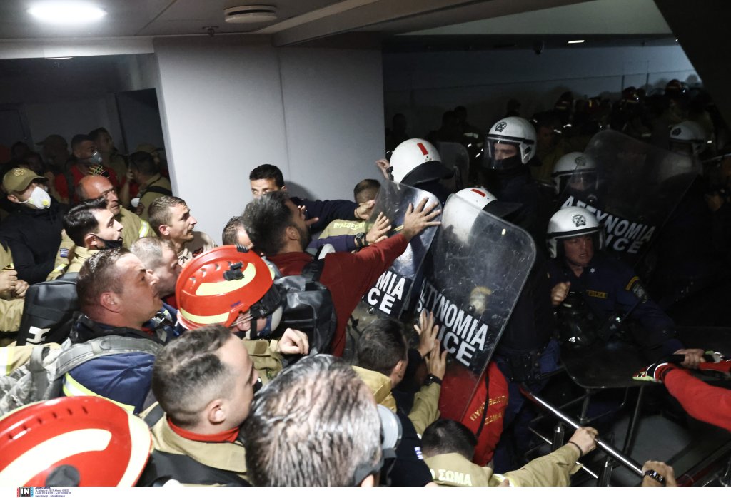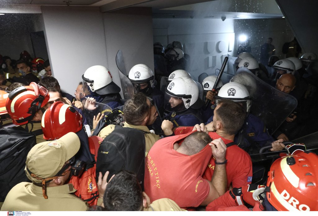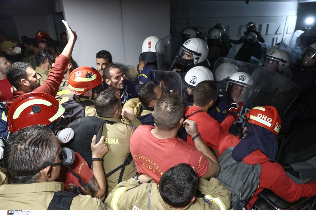 Βίαια επεισόδια σημειώνονται αυτήν την ώρα στο υπουργείου Πολιτικής Προστασίας όπου βρίσκονται εποχικοί πυροσβέστες από το μεσημέρι της Πέμπτη (31/10) και δηλώνουν πως δεν πρόκειται να εγκαταλείψουν το κτήριο εάν δεν ικανοποιηθούν τα αιτήματά τους.