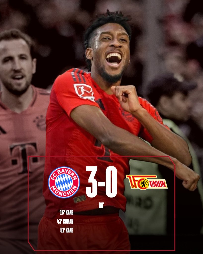 Εύκολο απόγευμα για την Μπάγερν η οποία με ηγέτη τον Κέιν που πέτυχε δύο γκολ καθάρισε με 3-0 την Ουνιόν Βερολίνου και πάτησε κορυφή.