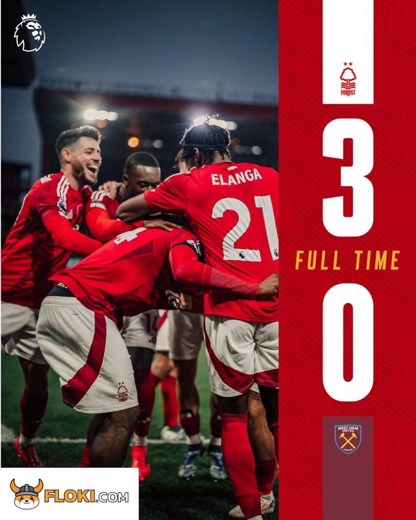 Η Νότιγχαμ Φόρεστ κέρδισε εύκολα τη Γουέστ Χαμ με 3-0, έφτασε τις τρεις σερί νίκες και ανέβηκε στην πρώτη τριάδα!