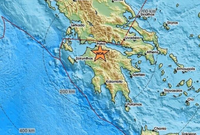 Το ακριβές επίκεντρο του σεισμού εντοπίζεται στα 31 χλμ. νότια - νοτιοανατολικά της Πάτρας.